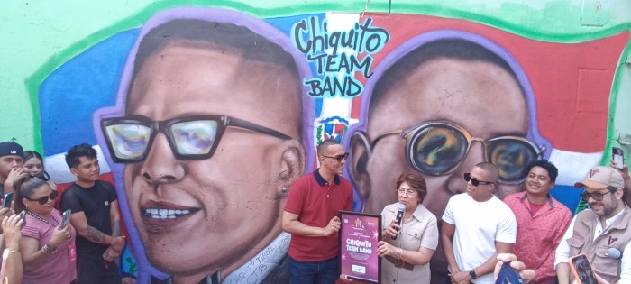 Veracruz, Ver.- (AVC/José Juan García) Chiquito Team Band recibió un homenaje por parte de autoridades municipales, el artista urbano Poderozo, fanes y amantes de la salsa con la develación de un mural en el barrio de La Huaca de la ciudad de Veracruz. El mural, que fue elaborado por el artista urbano Miguel Ángel Rodríguez Marín, mejor conocido como Poderozo, se ubica en el callejón Toña la Negra, entre Víctimas del 25 de Junio y Manuel Doblado. Durante el acto protocolario, la alcaldesa Rosa María Hernández Espejo entregó un reconocimiento a los integrantes de Chiquito Team Band. “Nos da mucho gusto que el arte popular se manifieste, que nuestros artistas populares se manifiesten y que rindan honor y culto a los ídolos del pueblo, a los ídolos populares como es este dueto de salseros, que aquí es una tradición musical la salsa” Por su parte, Rafael Berroa, a quien se le conoce como Chiquito Timbal, agradeció que se les dedique un mural en el barrio de La Huaca. “Estamos muy contentos, cada vez que visitamos Veracruz para nosotros es un honor y un placer, ya que ustedes son un público muy especial para nosotros (…) Es un honor y un privilegio que hayan hecho ese mural para nosotros con mucho cariño, nos sentimos contentos como dominicanos que somos que ustedes aquí en Veracruz nos hayan escogido como sus salseros preferidos de República Dominicana” Además, el músico profesional resaltó que se trata de su primera presentación en el Carnaval de Veracruz, pero recordó que ya se presentaron en el Salsa Fest. En ese sentido, el dominicano aseguró que Veracruz ya se convirtió en su segunda casa. “Yo creo que ustedes se merecen todo el amor y el cariño de nosotros, porque sin ustedes, nuestro público de aquí de Veracruz, nosotros no estuviéramos aquí”, insistió. Los integrantes de Chiquito Team Band plasmaron su firma en el mural ante la presencia de la alcaldesa Rosa María Hernández Espejo, el director de Turismo y Carnaval, Daniel Martín Lois, y admiradores presentes. Cabe destacar que Chiquito Team Band cerró el Carnaval de Veracruz con su presentación en el zócalo de la ciudad tras la ceremonia del entierro de Juan Carnaval.