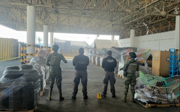 Veracruz, Ver.- (AVC) La Secretaría de Marina a través de la Armada de México, informa que en coordinación con la Aduana Marítima de Veracruz y la Fiscalía General de la República (FGR), en días pasados, se aseguraron aproximadamente 184.76 (ciento ochenta y cuatro punto setenta y seis) kilogramos de clorhidrato de metanfetamina y aproximadamente 34.81 (treinta y cuatro punto ochenta y uno) kilogramos de clorhidrato de cocaína, oculta en piedra laja dentro de dos contenedores, en el puerto de Veracruz, Ver. El hallazgo se derivó de dos inspecciones de rutina por parte de personal naval y de la Aduana, mismas que fueron apegadas a los protocolos correspondientes. En este contexto, personal ministerial y peritos de FGR, realizaron las diligencias correspondientes para la apertura del contenedor y desagrupamiento de pallets en los que hallaron piedras lajas que contenían aproximadamente 185 paquetes de una sustancia que dio positivo a clorhidrato de metanfetamina. Posterior a la toma de muestras y pesaje, se obtuvo un peso aproximado de 184.76 kilogramos. De igual manera, se realizó la apertura de un segundo contenedor, cuya incidencia percibida por los protocolos de actuación del personal naval y la Aduana Marítima de Veracruz, mostraron piedras lajas huecas con aproximadamente 35 paquetes. Por lo anterior, personal de la FGR llevó a cabo la respectiva toma de muestras y su pesaje que arrojaron un peso aproximado de 34.81 kilogramos de clorhidrato de cocaína. Al término de las diligencias, se levantaron las actas correspondientes por la Aduana Marítima de Veracruz y la FGR, posterior a la apertura, revisión y análisis de la mercancía. La presunta droga asegurada será puesta a disposición de las autoridades competentes para la apertura de la carpeta de investigación correspondiente. Cabe destacar que con este aseguramiento se estima una afectación económica a la delincuencia organizada de aproximadamente $29,270,653 millones de pesos, lo que debilita la estructura financiera de los grupos delictivos. Con estas acciones, la Secretaría de Marina a través de la Armada de México, en coordinación con la Aduana Marítima de Veracruz y la FGR, trabajan de manera conjunta para evitar el tráfico de sustancias ilícitas en nuestro país.