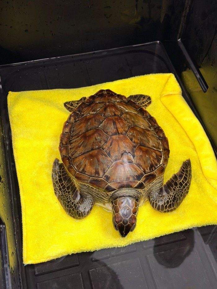 Tras la intervención, la tortuga fue reportada como estable y limpia, bajo resguardo para su valoración y recuperación.