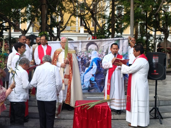 En la diócesis de Veracruz, el obispo Carlos Briseño Arch presidió la bendición de los ramos en el zócalo de esta ciudad.