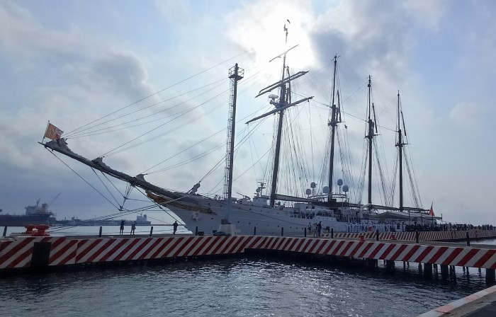 Veracruz, Ver.- (AVC/José Juan García) El buque escuela Juan Sebastián de Elcano, de la Armada de España, zarpó este domingo del puerto de Veracruz para continuar su travesía del XCVIII Crucero de Instrucción con destino a Puerto Limón, Costa Rica. Oficiales y guardiamarinas españoles fueron despedidos por veracruzanos y turistas que se dieron cita en el muelle turístico de la T por la mañana de este día. El buque escuela atracó en el puerto de Veracruz el 31 de marzo pasado, por lo que tuvo una estancia de cuatro días. En entrevista, el agregado de Defensa de España en México, Alberti Guevara, resaltó que el buque escuela recibió alrededor de cinco mil 500 veracruzanos y turistas durante los cuatro días que abrió sus puertas, cifra que indicó que rebasó a las visitas registradas en otros puertos. El coronel atribuyó que el número de visitantes fuera importante al periodo vacacional de la Semana Santa. “El buque escuela de la Armada española, Juan Sebastián de Elcano, organiza todos los años un crucero de instrucción, normalmente hacia Iberoamérica, este año en concreto ha recalado en Veracruz, México, como lo hizo la última vez en 2024 en Manzanillo, tiene 73 alumnos a bordo y el resto hasta totalizar 255 efectivos, es la dotación dicha del buque”, detalló. El agregado de Defensa de España en México comentó que la tripulación del buque escuela pudo conocer lugares turísticos de la región y que incluso visitaron la Heroica Escuela Naval Militar de Antón Lizardo. Alberti Guevara dijo que el buque escuela tiene programado llegar a Puerto Limón, Costa Rica, el 17 de abril próximo, por lo que serán 12 días de travesía por aguas del Caribe. Después de Puerto Limón, el Juan Sebastián de Elcano se dirigirá a Curazao, Galveston, Norfolk, Baltimore y Nueva York, para finalmente llegar a Cádiz el 31 de julio próximo. Cabe mencionar que durante su estancia y en presencia del embajador Juan Duarte, el buque escuela Juan Sebastián de Elcano acogió en una emotiva y solemne ceremonia de Jura de Bandera a 62 personas españolas residentes en México.