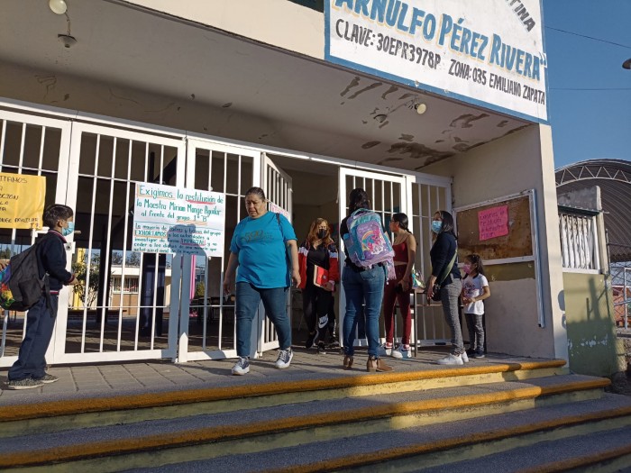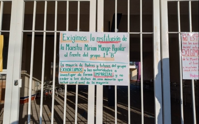 Los padres y madres expusieron que al quitar a la maestra de primer grado grupo B, no hay docente que la sustituya, así que las y los menores dejarán de tener clases y perderán días de aprendizaje.