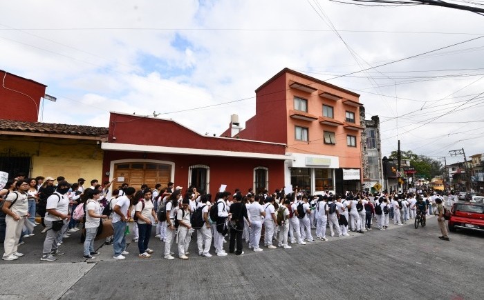 Destacó la participación de la Unidad de Ciencias de la Salud, cuyos alumnos marcharon con uniformes blancos y, al llegar a la zona universitaria, ofrecieron un aplauso en memoria de su compañera Diana Jael Cuervo Santos, estudiante de Psicología en Poza Rica, quien perdió la vida durante las inundaciones.