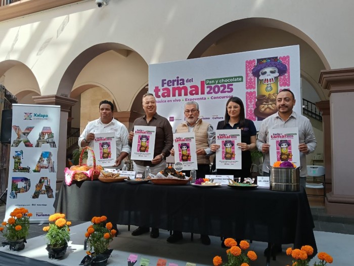 Xalapa, Ver.- (AVC/Verónica Huerta) A partir de las 12:00 horas del 31 de octubre, 1 y 2 de noviembre se llevará a cabo la “Feria del Tamal, Pan y Chocolate 2025” en el céntrico parque Benito Juárez, con la participación de más de 50 expositores de diversos municipios de la entidad veracruzana. En conferencia de prensa, el presidente municipal, Alberto Islas Reyes; el regidor quinto, Diego David Florescano Pérez; directora de Cultura Municipal, Jessica Pérez Martínez; director de Turismo, Josué Vázquez González, y el comerciante Luis Alfonso Vázquez Leal invitaron a las y los ciudadanos a visitar los 55 stands que serán colocados con el parque. Se contará con 55 expositores provenientes del Uxpanapa hasta la Cuenca del Papaloapan y el norte de Veracruz, lo que permitirá presentar la riqueza culinaria de distintas tradiciones. Luis Alfonso Vázquez Leal explicó que esta Feria permite a los pequeños y medianos comerciantes de alimentos a exponer sus productos y obtener ingresos, además de generar empleos temporales. “Este evento ha sido un impulso real para quienes elaboramos productos artesanales y tradicionales. Por eso es importante que nos vengan a visitar del 31 de octubre al 2 de noviembre”, sostuvo. Flores Cano dijo que “Xalapa ya es un referente nacional en eventos gastronómicos y culturales. Esta feria es posible gracias a las y los emprendedores, a quienes hemos respaldado desde el primer día”. En voz de la directora de Cultura Municipal, Jessica Pérez Martínez informó que los días viernes, sábado, y domingo se contará con eventos artísticos para el deleite de los visitantes. Citó de ejemplo que el viernes 31 diciembre a las 13:00 horas cuando se lleve a cabo la inauguración se contará con la Orquesta Municipal de Xalapa, y los demás días participarán el ballet folclórico, mariachi, jazz, talleres culturales y actividades culturales para la familia. Al hacer uso de la voz, el director de Turismo, Josué Vázquez González, resaltó que la Feria del Tamal, Pan y Chocolate se ha convertido en una atracción de la ciudad, que gusta desde los más pequeños de la casa hasta los adultos mayores. “La feria forma parte de una estrategia municipal de impulso al turismo gastronómico durante la temporada del Día de Muertos, tradición que nos une como familias, amigos, y con nuestros seres queridos que no están aquí” informó. Finalmente, Josué Vázquez recordó que en las ultimas dos semanas de octubre, Xalapa ofrece al turista más de 100 eventos relacionados con el festejo al Día de Muertos, y la Feria del Tamal, Pan y Chocolate es un atractivo imperdible para visitantes y familias xalapeñas.