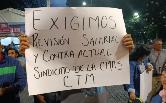 Los manifestantes llevaban cartulinas con mensajes que señalaban “Exigimos Revisión Salarial y Contractual del Sindicato de la CMAS – CTM”. Algunos se quedaron en el parque Benito Juárez y otros más ingresaron al palacio municipal en espera de una respuesta de la autoridad.