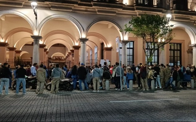 2025-11-06.- Integrantes del Sindicato de Empleados y Trabajadores de la CMAS de Xalapa adheridos a la CTM, se manifestaron en el palacio municipal para exigir al presidente municipal se respete el Contrato Colectivo de Trabajo.
