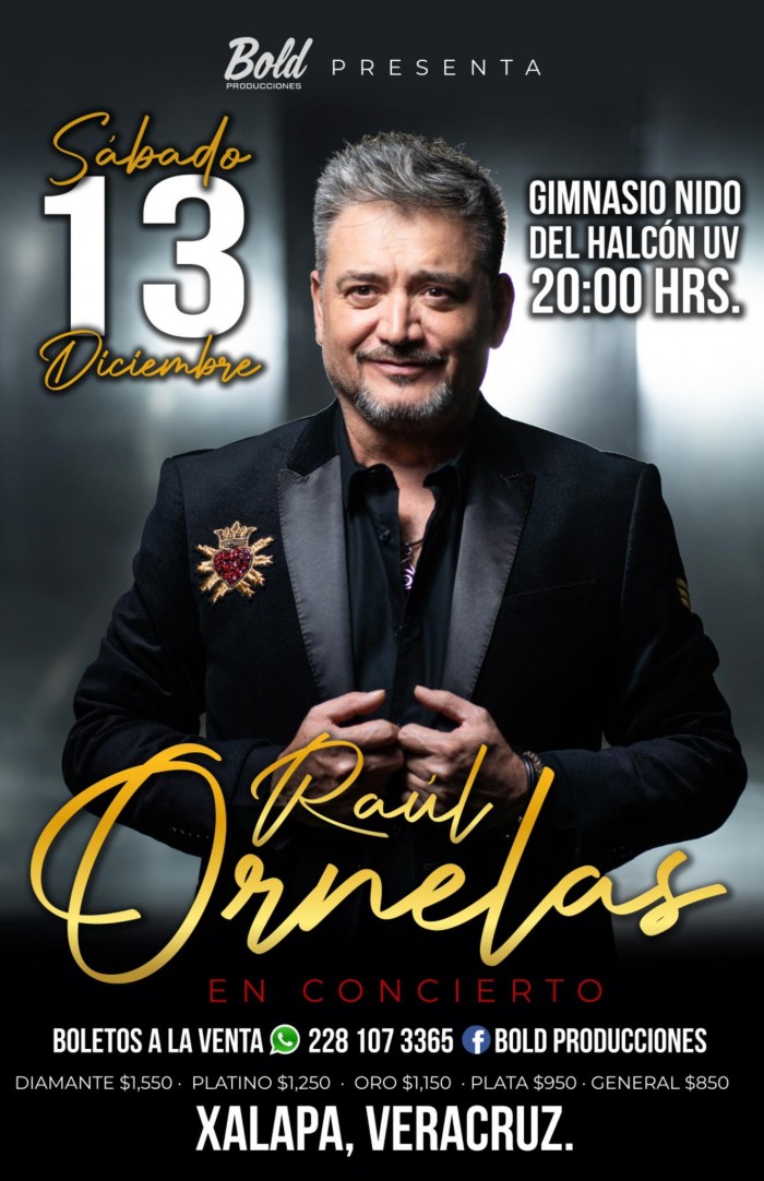 Xalapa, Ver.- (AVC) Para cerrar el 2025 entre canciones, risas y los abrazos que solo la música sabe dar, el cantante chiapaneco Raúl Ornelas se presentará en Xalapa el próximo 13 de diciembre con un gran concierto en el Nido del Halcón UV. En rueda de prensa el productor del concierto, Christian Hernández Tejeda, informó que el artista llega con un show fuera de serie de dos horas y media de duración, sonido espectacular y una mercadotecnia muy especial. Aunque Raúl Ornelas no cuenta con apoyo de disquera ni de televisión, ha construido una carrera profesional de "boca en boca" que lo ha llevado al Festival de Villa del Mar, ser un imán de taquilla y grabar trece discos con muchos éxitos. La idea de traer artistas de este calibre a la capital es que Xalapa sea un foco de atención a nivel nacional e internacional, para generar empleos y reactivar la economía regional. En sus redes sociales Raúl Ornelas publicó: "Tengo tantas ganas de volver a cantarles, de escuchar sus voces mezcladas con la mía, y de dejar que la noche se vuelva historia. Nos vemos pronto, con el alma lista y la guitarra afinada".