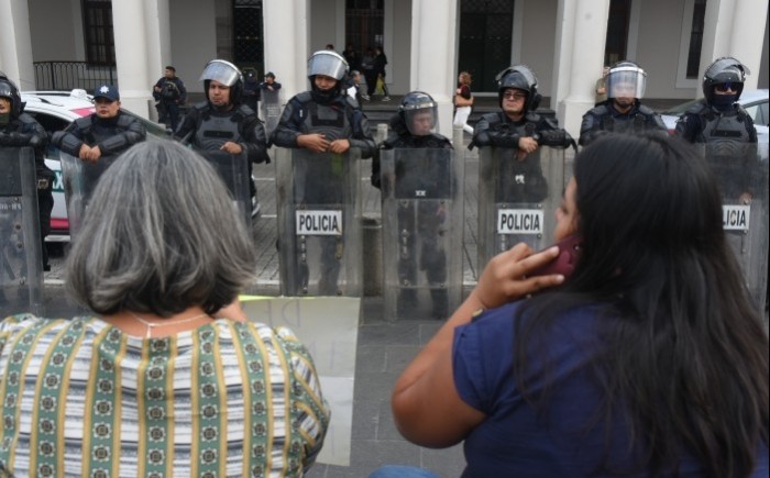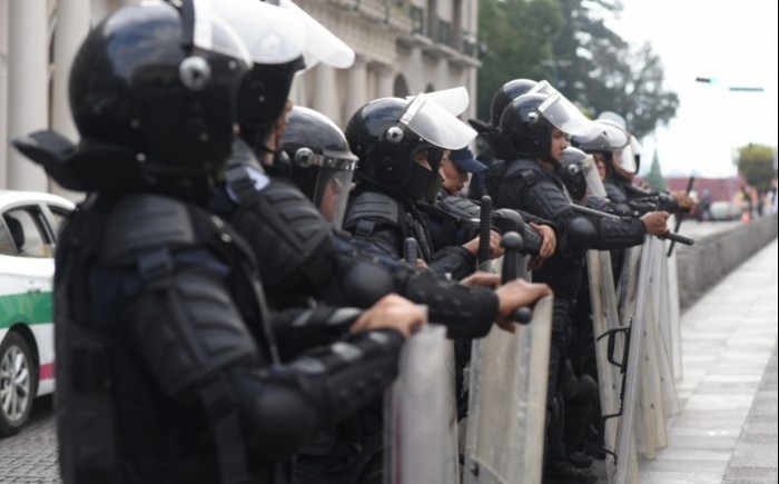 Xalapa, Ver.- (AVC/Verónica Huerta) A cinco días del Primer Informe de Gobierno de la Titular del Poder Ejecutivo estatal, Rocío Nahle García, antimotines de la Secretaría de Seguridad Pública (SSP) utilizó la fuerza para retirar a los exempleados del Seguro Popular que bloqueaban la calle Enríquez a fin de exigir el pago de laudos laborales.
