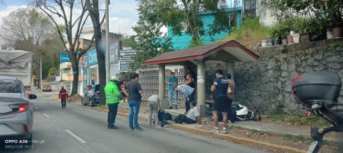 Xalapa, Ver.- (AVC/Verónica Huerta) El conductor de una motocicleta falleció en la mañana del miércoles a consecuencia de un accidente en la avenida Circuito Presidentes de esta ciudad, mientras la camioneta que presuntamente lo impactó, huyó del lugar. El cuerpo sin vida del motociclista quedó sobre la banqueta de la avenida Circuito Presidentes frente a la parada de camiones del transporte público y casi esquina con la calle Ángel Núñez Beltrán colonia Emiliano Zapata. El accidente se registró alrededor de las 09:00 horas del miércoles 26 de noviembre 2025, y en los primeros minutos corrió el rumor que la víctima era una mujer conductora de motocicleta, pero al llegar los socorristas de cuerpos de emergencia para apoyarlo, se percataron que era un hombre. Los socorristas constataron que el conductor de la motocicleta se encontraba sin signos vitales; y de acuerdo a las credenciales que presentaba tenía por nombre Jesús N con edad de 31 años. Testigos del accidente señalaron que el motociclista fue impactado por una camioneta de la marca Honda, su cuerpo salió disparado, cayó en la banqueta y ahí quedó sin moverse. La víctima vestía un pantalón, suéter, tenis en color negro; llevaba una mochila en negro; el casco en color rojo y líneas blancas; la motocicleta es marca BMW en colores azul y blanco. El presunto responsable del accidente huyó del lugar con rumbo desconocido, mientras que los testigos presentes en la parada del autobús presentaron crisis nerviosas. Al lugar llegaron socorristas de las corporaciones Cruz Verde y CRUM para brindar los primeros auxilios, pero el joven estaba sin vida. Elementos de la policía municipal acordonaron la zona, resguardaron el cuerpo y la motocicleta, y finalmente arribaron empleados de Servicios Periciales para realizar el levantamiento del cuerpo sin vida y trasladarlo al Servicio Médico Forense (Semefo) en espera de que una familia lo reclame.
