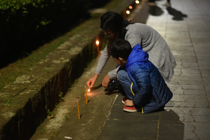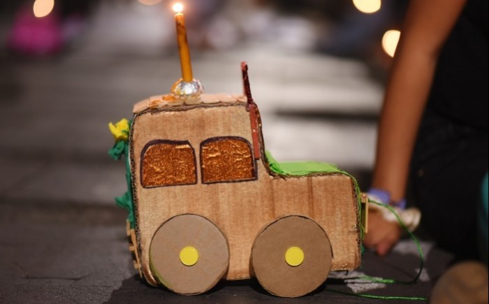 En el parque estaba la familia Solorzano originarios de Tuxpan, y en voz de Karen explicó que entre ella y su hija construyeron un carro hecho con cartón y encima una vela encendida.