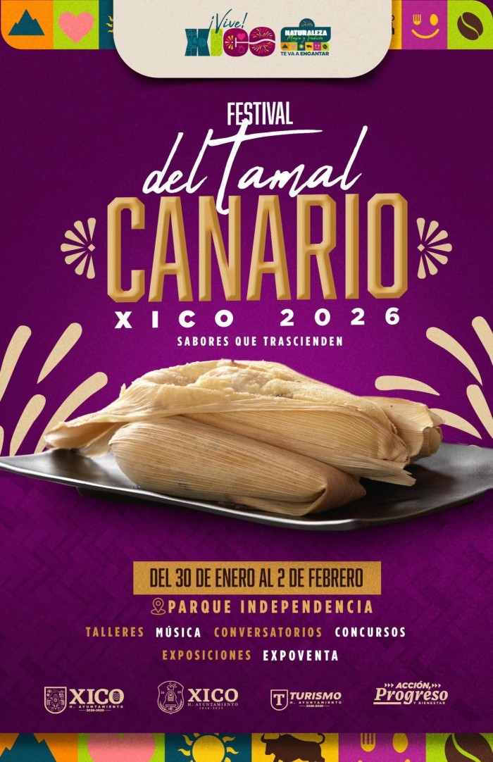 2026-01-12.- Del 30 de enero al 2 de febrero se realizará el Festival del Tamal Canario 2026 en Xico, con concursos, actividades culturales y expectativa de 45 mil tamales vendidos.
