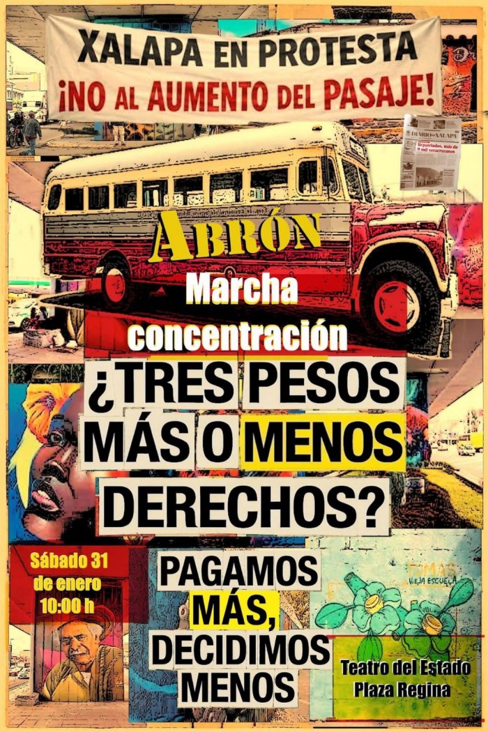 Xalapa, Ver.- (AVC) Colectivos ciudadanos convocaron a una marcha este sábado 31 de enero para manifestarse contra el aumento al pasaje del transporte público en la capital del estado, al considerar que la medida profundiza la precariedad económica y afecta de manera directa a miles de familias. A través de una convocatoria difundida en redes sociales, los organizadores señalaron que el incremento no representa únicamente un ajuste tarifario, sino una carga adicional para la población que depende del transporte público, en especial para el sector que vive en la economía informal. Indicaron que el aumento implica más gasto diario, mayor tiempo destinado a los traslados y una reducción del ingreso disponible. Los colectivos también advirtieron que tomar decisiones sin consultar a la ciudadanía constituye una forma de exclusión social, ya que impacta directamente en la vida cotidiana de la población usuaria del transporte. Sostuvieron que la falta de diálogo y participación limita el ejercicio pleno de los derechos ciudadanos. En su posicionamiento, relacionaron el incremento al pasaje con un contexto más amplio de problemáticas sociales, como las desapariciones, la extorsión, el hostigamiento a periodistas, el abandono a personas jubiladas y el uso indebido de recursos públicos. Señalaron que no se trata de hechos aislados, sino de un mismo modelo que administra la precariedad. La movilización está programada para iniciar a las 10:00 horas en el Teatro del Estado y concluir en Plaza Regina. Los organizadores llamaron a la ciudadanía a participar de manera pacífica y a no limitar la inconformidad únicamente a las redes sociales.