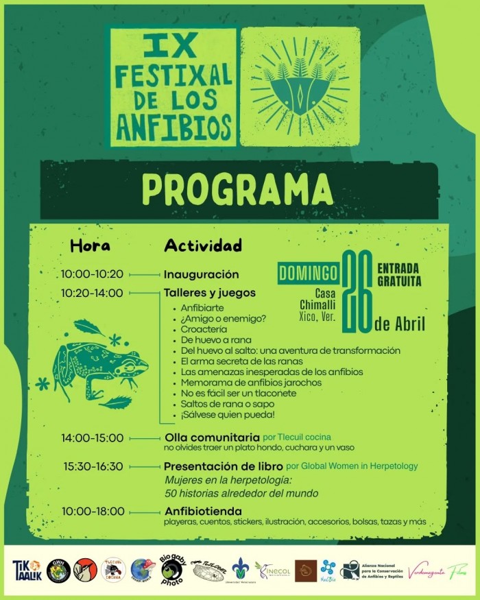 Xalapa, Ver.- (AVC) El IX Festival de los Anfibios se llevará a cabo el próximo domingo 28 de abril en la Casa Chimalli, ubicada en Xico, Veracruz, con una jornada de actividades educativas, culturales y recreativas. La entrada será gratuita.
