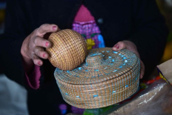 Carmen, junto con otras diez mujeres y hombres, forma parte del colectivo “El pino de oro de vaquería”, creado hace cinco años y dedicado a crear artesanías con las hojas de los pinos. “Hacemos varias cosas: paneras, tortilleros, jarrones que vamos a vender en exposiciones”.