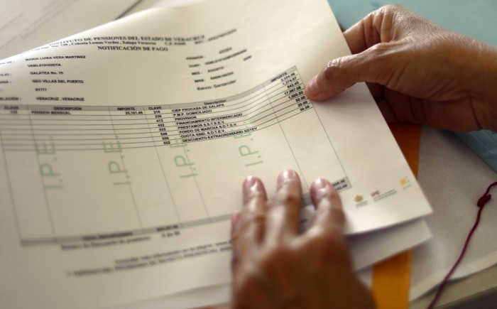 Si el trabajador del Instituto de Pensiones hubiera visto los recibos de la profesora, se habría percatado que de los 26 mil pesos que le tocan por pensión, la financiera sólo le deja mil 904 pesos.