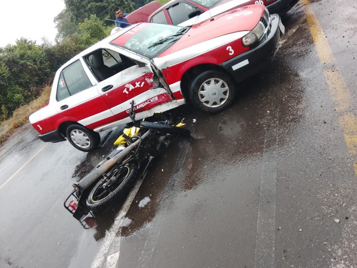 Motociclista lesionado al chocar contra taxi en la carretera federal Córdoba-La Tinaja