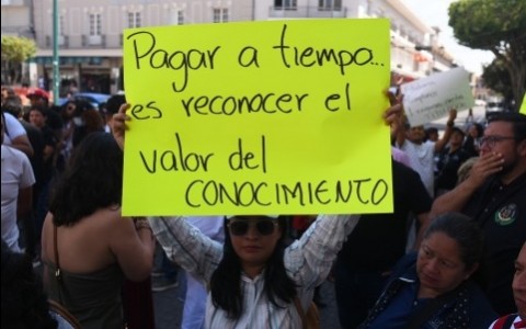 Docentes y estudiantes de la UPAV protestaron en Xalapa; denuncian adeudos salariales de hasta un año a más de 5 mil trabajadores.