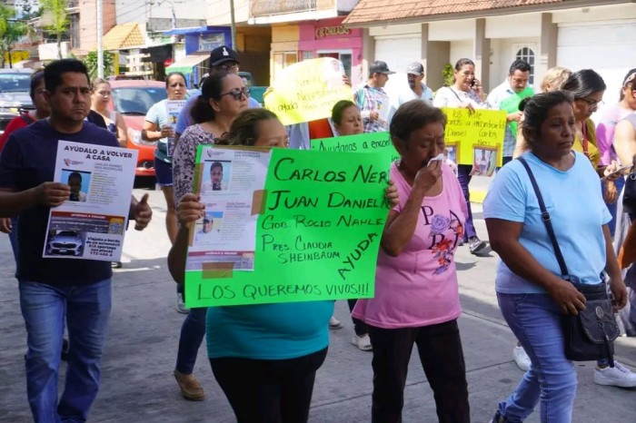 | Paso del Macho, Ver.- (AVC) Familiares y amigos del secretario del Ayuntamiento de Paso del Macho, Carlos Ranses Neri Rodríguez, y su hermano Juan Daniel, de los mismos apellidos, desaparecidos desde ayer jueves, marcharon este viernes por la tarde por las principales calles y avenidas de esta ciudad, solicitando regresen con bien. La familia pidió el apoyo de la gobernadora de Veracruz, Rocío Nahle García, y de la presidenta de la República, Claudia Sheimbaum Pardo, para sus seres queridos sean localizados de manera inmediata, pues temen por su integridad física. Cómo se recordará, los hermanos: Carlos Ramses Neri Rodríguez y Juan Daniel de los mismos apellidos perdieron completa comunicación con sus seres queridos cuando circulaban sobre la carretera estatal Córdoba-Soledad de Doblado o Peñuela-Santa Rita a la altura del municipio de Camarón de Tejeda, mismos que se transportaban en una camioneta marca Kia Sportage de color blanco y con placas del Estado de Veracruz: YTZ408A. La marcha inicio alrededor del mediodía, partiendo de la Colonia Ignacio Manuel Altamirano hasta llegar al Centro, de Paso del Macho. Los familiares y amigos portaron cartulinas con las consignas: "Carlos Neri Juan Daniel, Gobernadora Rocío Nahle, presidenta Claudia Sheinbaum, ayuda, los queremos vivos"; "Si los viste, ayúdanos a encontrarlos con bien"; "Claudia Sheinbaum ayúdanos a encontrarlos, Carlos Neri lo queremos vivo"; "ayúdanos a encontrarlos hermanos Nery Rodríguez. Rocio Nahle y Claudia Sheinbaum", "Ayúdanos a encontrarlos con bien. Los queremos de vuelta"; entre otras más. La familia de los desaparecidos Elia Chalchi Rodríguez, solicitó a la Gobernadora del Estado Rocío Nahle García y a la Presidenta de la República Claudia Sheinbaum Pardo, su intervención para la pronta localización de los masculinos.
