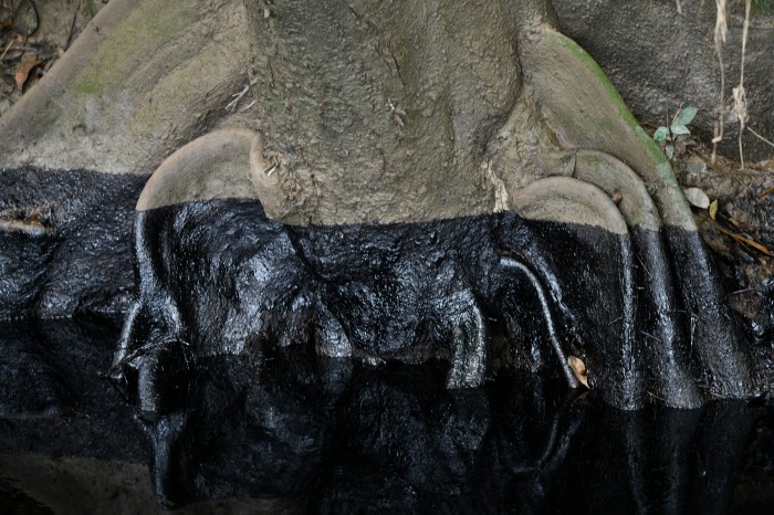 “El agua se contaminó toda, hasta los pozos. No puedo cocinar aquí, el olor es muy fuerte. No podemos hacer lumbre porque está muy cerca del derrame”, explica. Desde hace varios días, su familia duerme bajo un nylon y cartones. “Nos mojamos con la lluvia. No sé a dónde ir, no tenemos refugio”, agrega con voz cansada.