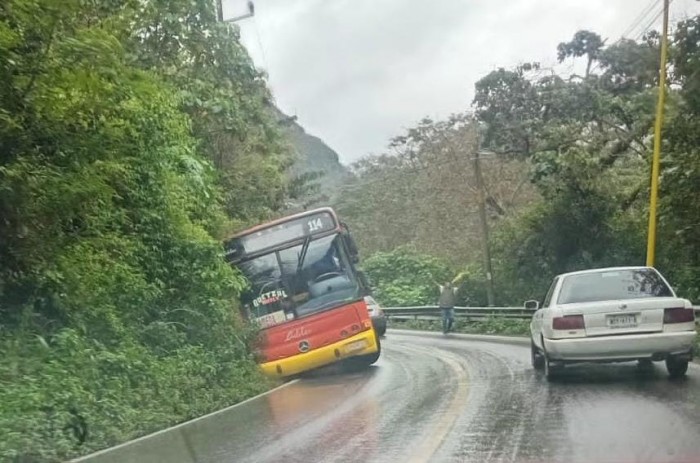 Minutos después se registró un aparatoso choque por alcance entre una camioneta familiar y un autobús de la Línea ADELAS a la altura del lugar conocido como La Cumbre de San Andrés.
