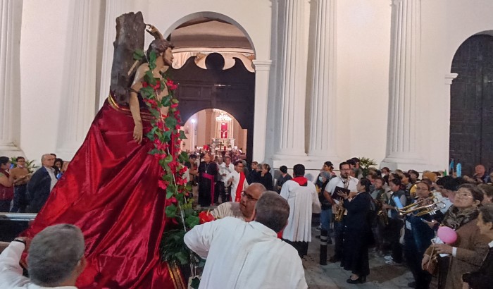| Veracruz, Ver.- (AVC/José Juan García) La comunidad católica celebró a San Sebastián mártir, el patrono de la ciudad de Veracruz, con una procesión por el Centro Histórico y una misa en la Catedral de Nuestra Señora de la Asunción. La procesión inició en el Tranvía del Recuerdo y continuó por la avenida Independencia hasta llegar a la Catedral. La imagen de San Sebastián mártir se llevó al frente. El contingente fue encabezado por el obispo Carlos Briseño Arch, quien fue seguido de sacerdotes, acólitos, ex alumnos y maestros del programa Orquestando Cumbia y los feligreses. Elementos de la Dirección de Tránsito y Vialidad Municipal cortaron momentáneamente la circulación al paso del contingente. Obispo, sacerdotes y feligreses reflexionaron sobre la vida del patrono de la ciudad de Veracruz a lo largo del recorrido, destacando que dio testimonio de su fe entregando incluso la vida. También se pidió por la paz en las familias y en el mundo, por los gobernantes para que trabajen por la paz y la justicia, por los jóvenes para que crezcan en los valores buscando la paz que Dios ofrece al mundo, por quienes realizan su servicio militar para que Dios los proteja y por quienes han muerto en las guerras para que Dios los acepte en su presencia. "Imitemos a San Sebastián amando a Dios como lo hizo él, no de palabra ni de Boca, sino con obras y según la verdad, dando testimonio de vida", pidió uno de los colaboradores del obispo. Al llegar a la Catedral, la imagen del santo patrono se bajó de una camioneta donde se le transportó. El obispo Carlos Briseño Arch roció agua bendita sobre la imagen de San Sebastián antes de ingresar a la Catedral. Una vez que se le dio la bienvenida, se le ingresó al templo y se le colocó a un costado del presbiterio. Ahí se concluyó con una reflexión sobre los dos martirios que sufrió Sebastián, a quien se elevó a los altares precisamente por derramar su sangre al igual que Cristo, dando testimonio de su fe y amor. El contingente que participó en la procesión resultó menor que en otras ocasiones. Incluso, los fieles no llenaron las bancas de la Catedral. A las siete de la noche, el obispo Carlos Briseño Arch presidió la misa solemne en honor al patrono de la ciudad de Veracruz. Cabe mencionar que el paseo acuático por la bahía sur del puerto de Veracruz no se organizó en este 2026 por las condiciones meteorológicas que imperaron en la costa central, además de que tampoco se realizó el Festival del Pescador, el cual benefició a los hombres de las redes y a sus familias en años anteriores.