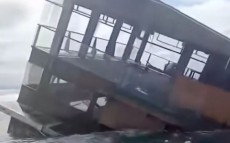 Sin apoyo oficial tras las lluvias, habitantes de Tzicatlán, Texcatepec, Veracruz, construyen un puente con troncos para salir y conseguir víveres.