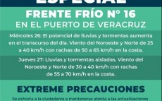 Cambio de clima a partir de esta noche * Su masa ártica provocará Norte con rachas máximas y eventuales de 55 a 70 km/h en costas y descenso de temperatura * El máximo impacto se espera para el jueves 27.