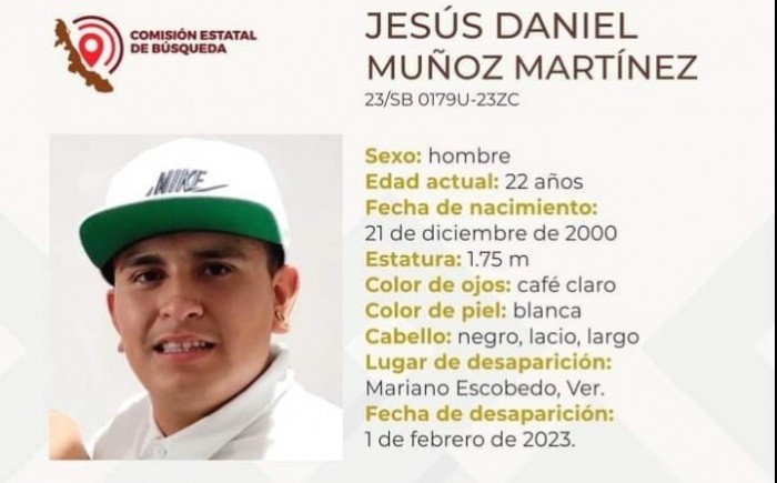 Orizaba, Ver.- (AVC) La Comisión Estatal de Búsqueda de Veracruz y el Colectivo de Familias de Desaparecidos en la Zona Córdoba-Orizaba, reportó como desaparecidos a dos hombres de 22 y 21 años, originarios de Mariano Escobedo y Veracruz, respectivamente, luego de que perdieron completa comunicación desde el 01 de febrero y 25 de enero del presente. El joven Jesús Daniel Muñoz Martínez de 22 años y con domicilio en Mariano Escobedo, desapareció el miércoles primero de febrero, mismo que cuenta con tatuajes en el cuello y en ambos brazos, además cuenta con una estatura de 1.75 metros, ojos cafés claros, de tez blanca y con cabello negro, lacio y corto. El otro joven responde al nombre de: Andrés Emyr Ramírez Médano, de 21 años, y con domicilio en el municipio de Veracruz, mismo que desapareció el miércoles 25 de enero, quien cuenta con un lunar en la mejilla derecha, tatuajes en brazo derecho y en brazo izquierdo, además de que tiene una estatura de 1.76 metros, ojos cafés claros, de tez blanca y con cabello castaño oscuro, corto y lacio. Los familiares de estos hombres ya interpusieron una denuncia ante la Fiscalía Especializada en Personas Desaparecidas, además de que solicitaron el apoyo de la ciudadanía en general para poder localizarlos de manera inmediata.