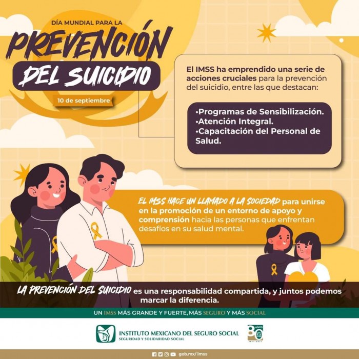 Orizaba, Ver.- El Instituto Mexicano del Seguro Social (IMSS) en Veracruz Sur hace un llamado a la población para identificar oportunamente las alarmas de riesgo suicida, toda vez que con la atención y detección oportuna se pueden prevenir. La psicóloga del Servicio de Promoción de la Salud de los Trabajadores IMSS (SPTIMSS), licenciada Olivia Pestaña Roque, detalló que un suicida da señales de sus intenciones como planear su muerte arreglando asuntos, regalando sus pertenencias, despidiéndose, haciendo su testamento o escribiendo notas suicidas. Si se detectan estos signos se puede solicitar ayudar y dar acompañamiento, es importante que sepan que no están solos. Explicó que uno de los mitos más grandes es la creencia que hablar sobre el suicidio es dar ideas a las personas o incentivar la acción, lo cual es totalmente falso, por el contrario representa la oportunidad para buscar ayuda profesional y con ello salvar vidas. “Abordar el tema del suicidio no solo es un factor importante de prevención, sino que es una necesidad apremiante, ante la demanda de atención ambulatoria y hospitalaria de ideación e intento suicida, es un trabajo donde la familia, los amigos y demás seres queridos juegan un papel importante”, explicó. La prevención del suicidio es responsabilidad de todos, mencionó la experta del IMSS, pues hace voltear a ver, qué es lo que como sociedad se hace, cómo se relaciona con el entorno, qué está orillando a niños, adolescente y adultos para ver al suicidio como una solución ante los problemas que la vida presenta. Los problemas sociales como la drogadicción, las violencias, el consumismo, la desigualdad y la discriminación, juegan un papel importante para lograr ese desequilibrio en la salud mental, llevando a las personas a pensar que arrebatarse la vida es la única solución. “Estas condiciones hacen que la ansiedad o una tristeza se potencialicen, llevando a pensamientos de muerte, cuando empieza a exteriorizar esas ideas hay que tomarlo muy en serio, no se trata de llamar la atención, de acuerdo con las estadísticas del Instituto, ocho de cada 10 personas que cuentan sus intenciones de suicidio a familiares o amigos lo consuman”, mencionó. En caso de detectar a un familiar, amigo o ser querido o bien que ya haya manifestado la idea de acabar con su vida, puede canalizarlo a la Unidad de Medicina Familiar que le corresponda para ser valorado y enviado al Módulo de Salud Mental donde un grupo multidisciplinario le dará el tratamiento y terapia adecuado. El IMSS participa en el Programa Nacional de Prevención de Suicidio que cuenta con la línea de la vida 800 911 2000, para dar contención y acompañamiento emocional.
