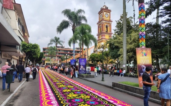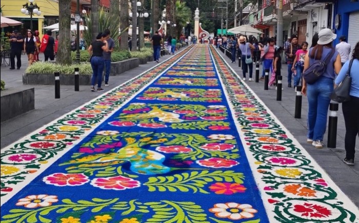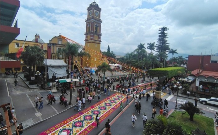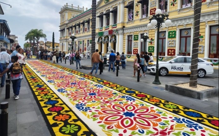 Orizaba, Ver.- (AVC) En el marco de la fiesta al Santo Patrono de los orizabeños, San Miguel Arcángel, este domingo se presentan los tradicionales tapetes de aserrín de Huamantla, Tlaxcala. Éstas majestuosas obras de arte las elabora la familia Chacón, originaria del estado de Tlaxcala, mismos que son admirados por miles de orizabeños y de ciudadanos de la región de las Altas Montañas. Cabe recordar que son más de 16 años los que llevan montando estos tapetes, los cuales se instalan en el paseo peatonal de la avenida peatonal Colón desde Sur 10 hasta Madero, y del Parque Castillo hasta el Palacio de Hierro. Aunque la celebración grande del Santo Patrono es este lunes 29 de septiembre, en esta ocasión fueron colocados un día antes, hoy domingo 28 para el disfrute de todos los orizabeños y de la región centro. Los majestuosos y coloridos tapetes de aserrín de Huamantla, Tlaxcala, instalados en el corazón del Centro Histórico de la Pluviosilla fueron recorridos por el alcalde de Orizaba, Juan Manuel Diez Francos y el Obispo de la Diócesis de Orizaba, Monseñor Eduardo Cervantes Merino.