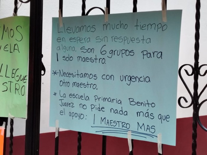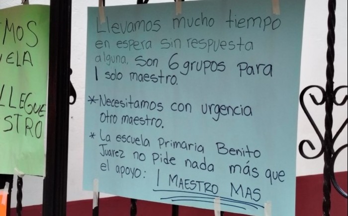Los inconformes recordaron que desde noviembre de 2024 -tras la jubilación de una profesora-, no ha sido designado otro docente, por lo que la carga recae completamente en un solo maestro que también funge como director de la escuela.