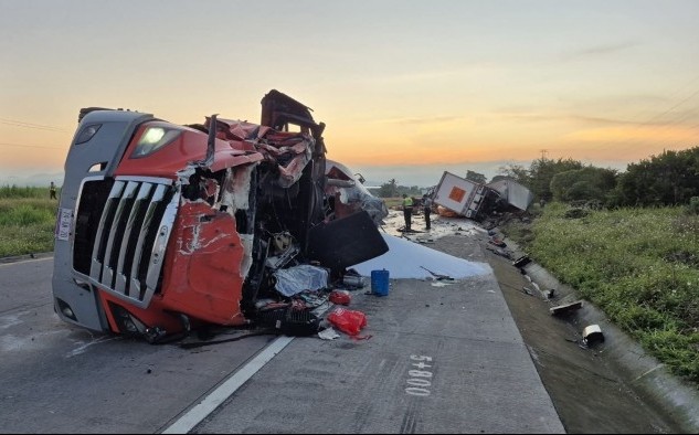 Yanga, Ver.- (AVC) Un fuerte accidente entre dos unidades de carga pesada sobre la autopista 150D Córdoba- Veracruz, dejó como saldo una persona sin vida, otra más gravemente lesionada, daños y pérdidas materiales millonarias, así como una intensa movilización de diferentes cuerpos de emergencias y rescate, policiales y de cientos de rapiñeros, además del cierre total de la circulación vehicular a la altura del municipio de Yanga. El fatal percance se presentó al filo de las siete de la mañana de este viernes 7 de noviembre del presente en el kilómetro 5 +800 del tramo carretero Rancho Trejo, Amatlán- la Plaza de Cobro 116 de Cuitláhuac, con dirección al Puerto de Veracruz. En el percance participó un tráiler Kenworth Kenmex, de color blanco que remolcaba dos cajas en cortinadas cargadas con cartones de cerveza, la cual quedó esparcida sobre la carpeta de rodamiento, así como un tractocamión marca Freightliner, de color naranja y con placas de circulación: 74AN2D del SPF, el cual remolcaba una tolva granelera cargada presuntamente con azúcar refinada. A causa del fuerte choque, uno de los operadores perdió la vida en el lugar, mientras que otro más resultó gravemente lesionado, el cual fue auxiliado por Paramédicos de Capufe y trasladado a un Hospital del municipio de Córdoba para su atención médica. A causa del deceso, el lugar fue resguardado y acordonado con cinta amarilla preventiva por las autoridades de la Guardia Nacional División Carreteras, mismos que solicitaron la inmediata intervención de las autoridades ministeriales. Hasta el lugar llegaron autoridades de la Fiscalía de Córdoba con Peritos en Criminalística y detectives Ministeriales, los cuales tomaron conocimiento y efectuaron el levantamiento del cuerpo, no sin antes realizar las diligencias correspondientes e integrar una carpeta de investigación. El cadáver fue trasladado en calidad de desconocido a las instalaciones del SEMEFO Regional del Ejido San Miguelito, de Córdoba, para los trámites correspondientes de ley e identificación oficial. Al lugar arribaron cientos de rapiñeros, quienes robaron toda la carga que transportaba la unidad doblemente articulada con cartones de cerveza. Será el personal de grúas quién realice el retiro de las unidades accidentadas para el deslinde de responsabilidades, además de restablecer completamente la circulación vehicular de la vía rápida 2100 México- Veracruz. A causa del fatal accidente, la circulación vehicular con dirección al Puerto Jarocho se encuentra totalmente cerrada, por lo que autoridades carreteras exhortan a los automovilistas usuarios a tomar vías alternas como la Carretera Federal 150 Córdoba- La Tinaja- Boca del Río.