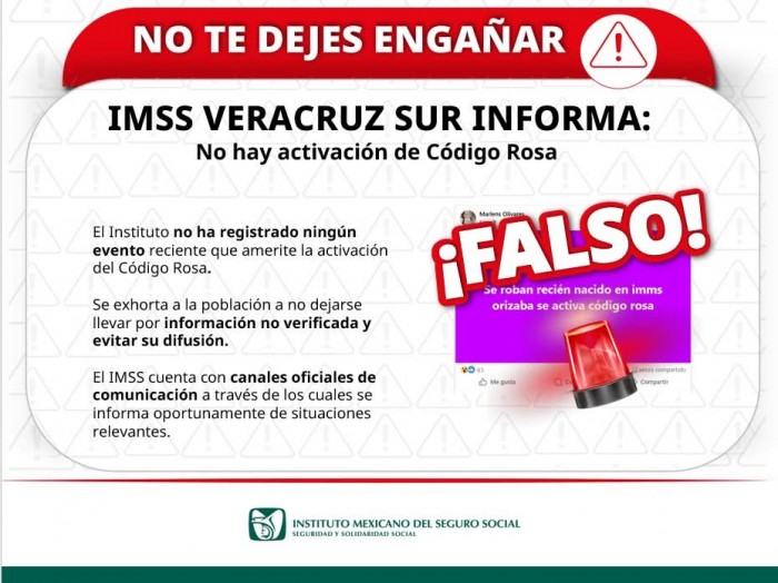 Por último, las autoridades del IMSS exhortaron a la ciudadanía a evitar la difusión de información no confirmada, ya que este tipo de publicaciones puede provocar alarma innecesaria, afectar la imagen de la institución y entorpecer las labores médicas.