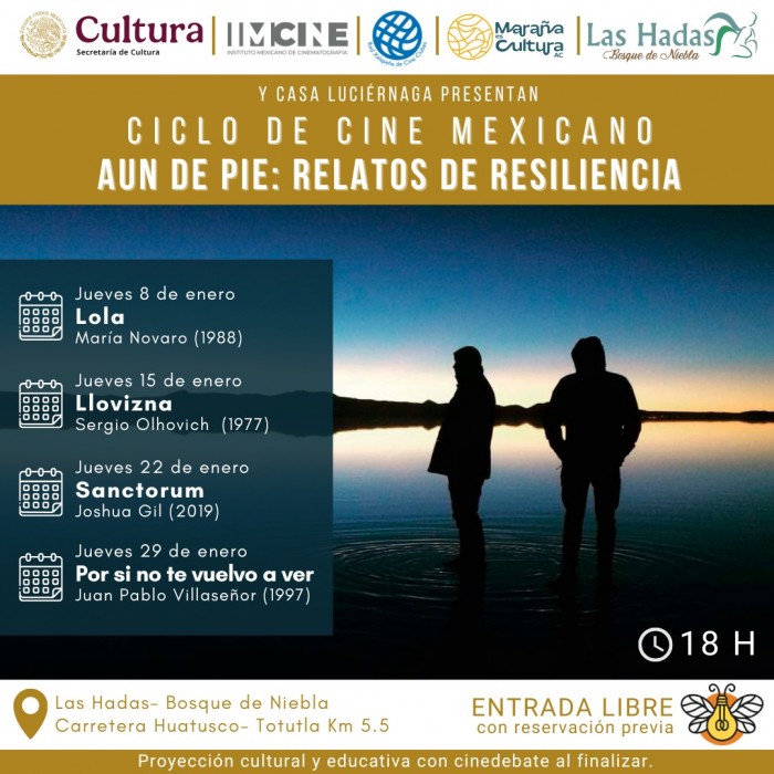 Huatusco, Ver.- (AVC) En Huatusco inició el ciclo de cine mexicano “Aún de Pie: Relatos de resiliencia”, con cuatro largometrajes nacionales que se proyectarán durante enero en funciones gratuitas y cupo limitado. El programa incluye cuatro películas mexicanas que abordan desigualdad social, memoria y procesos de resistencia. Las funciones se realizarán los jueves de enero a las 19:00 horas. Las proyecciones tendrán lugar en Las Hadas – Bosque de Niebla, ubicado en el kilómetro 5.5 de la carretera Totutla–Huatusco, en Huatusco de Chicuellar. La entrada es libre, con cupo limitado. Las películas se exhiben en formato digital con fines culturales y de promoción cinematográfica, como parte de una muestra abierta al público. El ciclo se mantendrá activo durante todo enero. La organización informó que el acceso será conforme al aforo disponible y recomendó llegar con anticipación. Programación Jueves 8 de enero | 18:00 h Lola (Dir. María Novaro) El retrato íntimo de una mujer que enfrenta la maternidad, la soledad y la precariedad mientras busca afecto y libertad en la ciudad. Jueves 15 de enero | 18:00 h Llovizna (Dir. Sergio Olhovich) Un viaje de regreso se transforma en una experiencia marcada por la tensión y la desconfianza, revelando profundas brechas sociales y morales. Jueves 22 de enero | 18:00 h Sanctorum (Dir. Joshua Gil) En una comunidad rural asediada por la violencia, la fe y los rituales emergen como formas de resistencia colectiva. Jueves 29 de enero | 18:00 h Por si no te vuelvo a ver (Dir. Juan Pablo Villaseñor) Tres hombres mayores emprenden un viaje inesperado que los confronta con la amistad, la memoria y una última oportunidad de redención. El Ciclo de cine mexicano “Aún de Pie: Relatos de resiliencia” invita al público a acercarse a historias que reflejan distintas realidades del país, reafirmando al cine como un espacio de encuentro, reflexión y diálogo comunitario. Este proyecto es un esfuerzo del Foro cultural Casa Luciérnaga, con el apoyo del Instituto Mexicano de Cinematografía (IMCINE), la Red Xalapeña de Cine Clubes y Maraña es Cultura A.C.,
