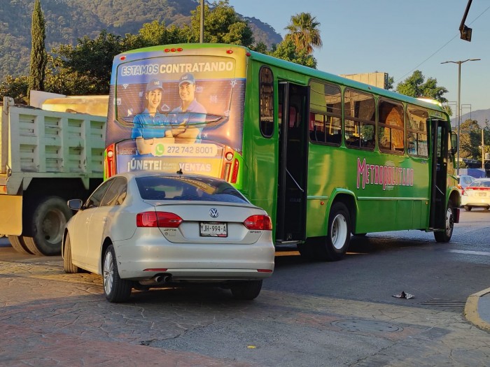 Río Blanco, Ver.- (AVC) Un choque por alcance entre un autobús urbano y un automóvil particular ocurrió la mañana del miércoles 11 de febrero en Camino Nacional, en Río Blanco. El hecho provocó cierre parcial por más de 40 minutos. No se reportaron personas lesionadas. El percance se registró en el cruce del bulevar o carretera federal 150 Orizaba–Tehuacán con la calle De La Unión, a metros del entronque hacia la autopista de Vicente Guerrero, zona de alto flujo vehicular. De acuerdo con los primeros reportes, el conductor de un Volkswagen Jetta Sport color champagne salió de la calle De La Unión y se impactó por alcance contra un autobús de la línea Metropolitanos que se encontraba detenido para el ascenso de pasajeros. Tras el impacto, el automóvil quedó debajo de la parte trasera del autobús, lo que generó movilización de elementos de la Secretaría de Seguridad Pública y paramédicos de Protección Civil. Las corporaciones descartaron personas lesionadas y confirmaron daños materiales en ambas unidades. Cierre parcial y retiro de unidades Peritos de Tránsito Estatal realizaron las diligencias correspondientes y coordinaron el retiro de los vehículos siniestrados. La circulación permaneció parcialmente cerrada durante más de 40 minutos hasta la liberación total de la vialidad. Cierre: Autoridades estatales reiteraron el llamado a respetar los señalamientos viales en cruces de alta circulación como Camino Nacional, donde confluyen rutas urbanas y tránsito federal. El peritaje determinará las responsabilidades conforme al reglamento de tránsito vigente.