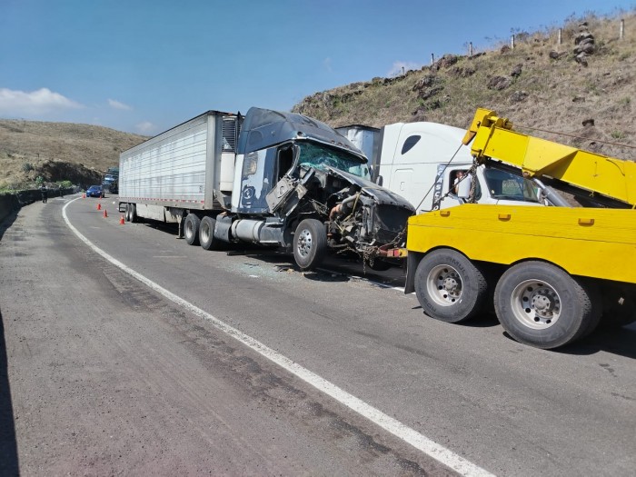 De acuerdo con los primeros reportes, el conductor de un tractocamión Kenworth negro, que remolcaba una caja seca, descendía sin conservar la distancia reglamentaria e impactó la parte trasera de un camión torton cargado con blocks.
