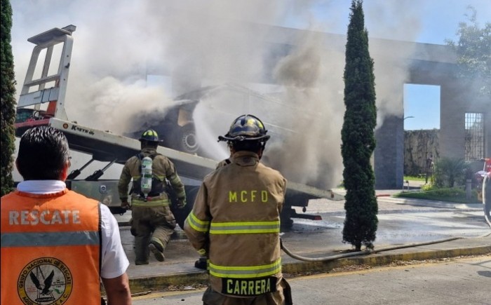 2026-02-26.- Una Van se incendió sobre una grúa en Fortín; cerraron el bulevar Garza Sada. No hubo lesionados y autoridades controlaron el fuego.