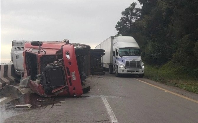 Maltrata, Ver.- (AVC) Un tráiler volcó la tarde de este domingo en la autopista 150D Puebla-Orizaba, a la altura de las Cumbres de Maltrata, lo que provocó afectaciones viales. Autoridades confirmaron que no hubo personas lesionadas.