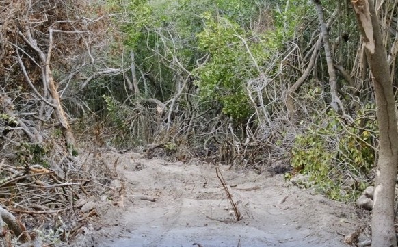 Tampico, Alto, Ver.- (AVC) Más de 700 metros de manglar fueron removidos en el municipio de Tampico Alto para abrir un camino de terracería que conecta la laguna de Tamiahua con playa Hermosa. El acceso ya une ambos cuerpos de agua.