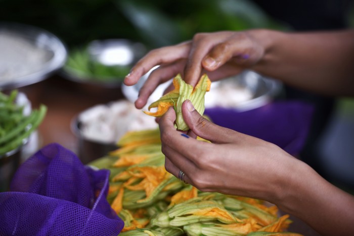 A la vez chefs y especialistas en nutrición, además de cocineras tradicionales, dieron cátedra sobre la preparación de guisos con productos orgánicos, libres de grasas y pesticidas y presentaron una muestra gastronómica con tamales, gordas y picadas vegetarianas, maíz criollo asado, pan artesanal y todo tipo de productos de la región elaborados por campesinos e indígenas.