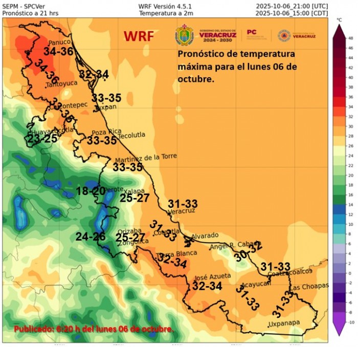 Xalapa, Ver.- (AVC) En las próximas 24 a 48 horas se espera poco cambio de la temperatura máxima, con tendencia a disminuir mañana; ambiente templado a fresco por las noches y madrugadas. Aumento del potencial para lluvias y tormentas eléctricas, con máximos acumulados en costas y cuencas del sur. Nieblas y neblinas eventuales. Viento variable fijándose al Norte de 25 a 35 km/h. Rachas mayores en zonas de tormenta. Olas de 0.5 a 1.0 metros cerca de la costa. Perspectiva: En los siguientes días se prevé la interacción de una vaguada sobre el Golfo de México con un disturbio tropical sobre el Golfo de Tehuantepec, dando lugar a un aumento notable del potencial de lluvias y tormentas en todo el estado con mayor impacto entre miércoles y jueves.
