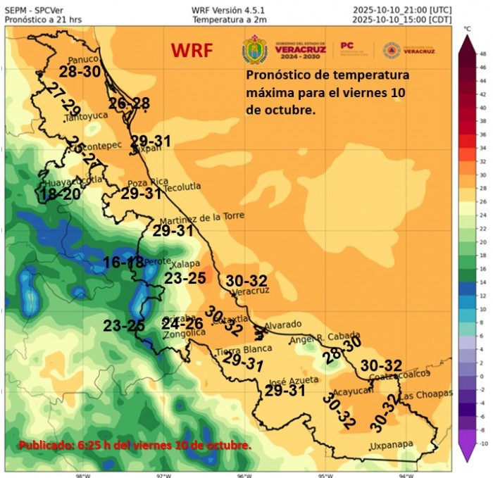 Xalapa, Ver.- (AVC) En las próximas 24 a 48 horas se espera gradual disminución del potencial para lluvias y tormentas eléctricas, con los máximos acumulados en cuencas del norte y sur, con nieblas y neblinas eventuales. La temperatura máxima con poco cambio; ambiente templado a fresco por las noches y madrugadas; viento del Norte de 20 a 35 km/h con rachas de 45 a 60 km/h, similares en zonas de tormenta y olas de 1.0 a 2.0 metros cerca de la costa. Perspectiva: La vaguada con eje a esta hora sobre el suroeste del Golfo de México, ha dejado de interactuar con la ahora tormenta tropical #Raymond del Pacifico, lo que estaría ayudando a que el potencial de lluvias y tormentas disminuya gradualmente en el estado en los siguientes días.