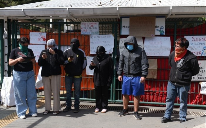 Durante una conferencia en la Unidad de Humanidades, los alumnos, con el rostro cubierto, anunciaron que mantendrán el paro de actividades y no participarán en las clases virtuales convocadas por la Secretaría Académica a partir del 10 de noviembre.