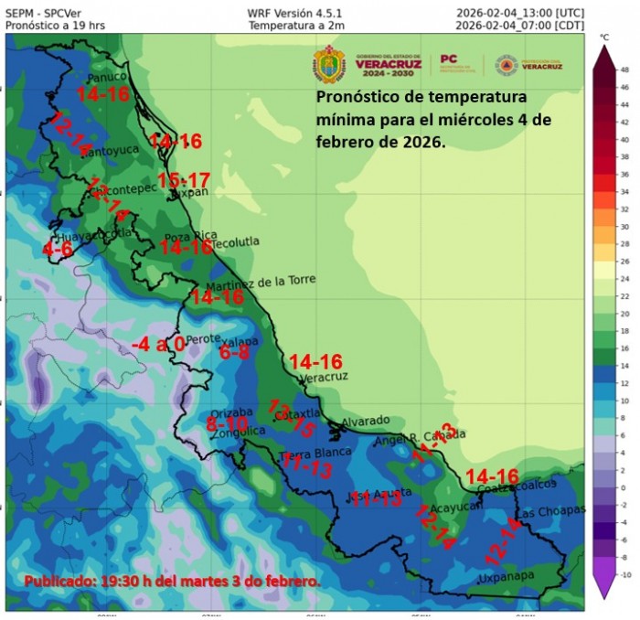 2026-02-03.- Esta noche y madrugada de miércoles continúa el ambiente frío con heladas al amanecer en zonas de mayor elevación de la entidad veracruzana.