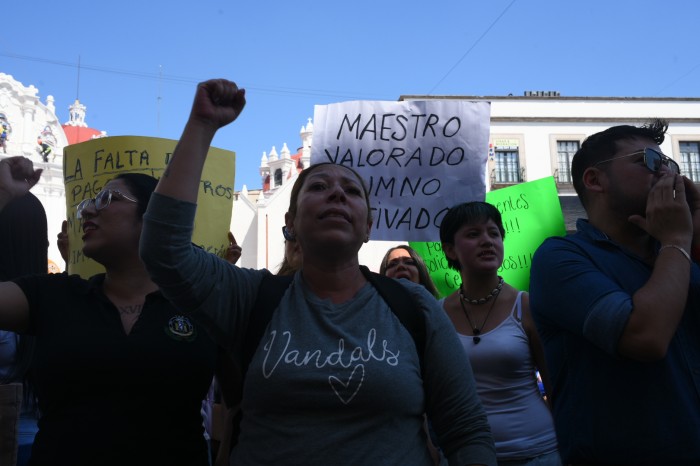 De acuerdo con los manifestantes, más de 5 mil trabajadores en el estado permanecen en espera de pago.
