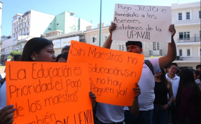 La movilización ocurre después de que la UPAV informó el inicio de pagos a directores y personal administrativo; sin embargo, los docentes señalan que ellos continúan sin recibir remuneración.