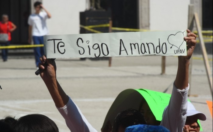Xalapa, Ver. (AVC/Perla Sandoval). Docentes y estudiantes de la Universidad Popular Autónoma de Veracruz (UPAV) marcharon este sábado por el centro de Xalapa para exigir el pago a asesores solidarios, maestros frente a grupo a quienes se les adeuda hasta un año de salario.