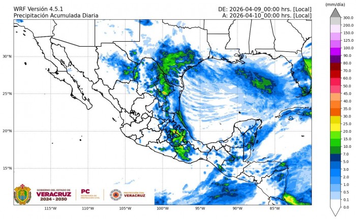 Xalapa, Ver. (AVC).— Persistirá la probabilidad de lluvias ligeras a moderadas en Veracruz durante este jueves, con mayor intensidad en la región montañosa central, de acuerdo con el pronóstico meteorológico.