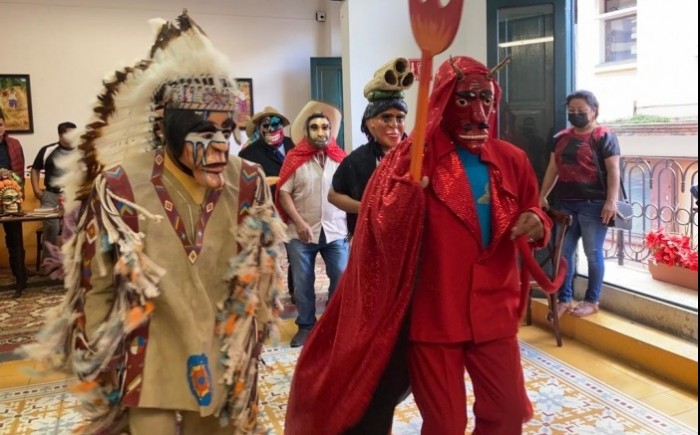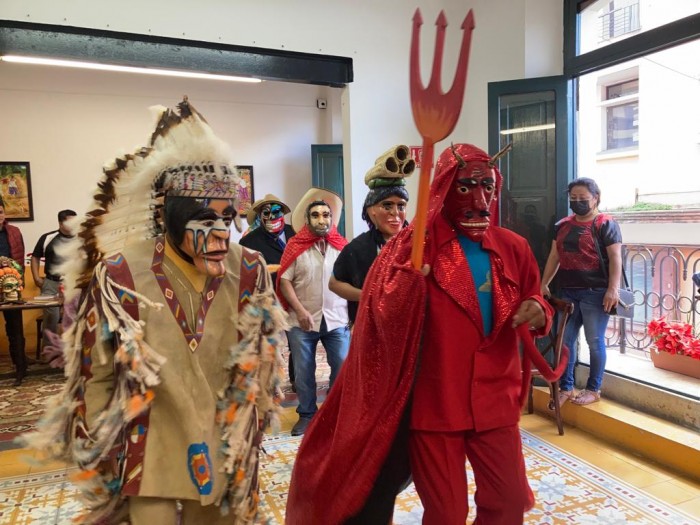 A Xalapa arribaron hombres y mujeres integrantes del Comité Central de Comparsas y Enmascarados del municipio de Tempoal encabezados por el danzante Carlos Portilla Reyes, para ofrecer una conferencia de prensa ataviados con máscaras de calaveras, de viejos, de diablos, vestidos coloridos y bastones de madera.