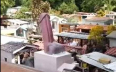 Fotografías: Enrique Noé Romero Acosta Misantla, Ver.- (AVC/Verónica Huerta) Antes de morir, la ciudadana oriunda de este municipio, Catarina Orduña, pidió a sus familiares que en su tumba colocarán un monumento al pene de gran tamaño, para que la gente cuando lo viera recordaran su carácter alegre, jovial y con conversación amena y ocurrente. De esta manera, el sábado 22 de julio en la comunidad de Ignacio Zaragoza, municipio de Misantla, Veracruz, sus familiares acudieron a develar la estatua al pene que pidió Doña Catarina cómo parte de su último deseo. En vida, Doña Catarina fue conocida en Misantla como una mujer de carácter alegre, dicharachera, que tenía una conversación amena con todos, que gustaba reírse del pene. Doña Catarina nació un 25 de noviembre del año 1921, hoy tendría 100 años, procreó a 9 hijos, militaba en el Partido Revolucionario Institucional (PRI) y le gustaba decir que era “priísta de corazón”. El exalcalde de Misantla, Álvaro Mota Limón expresó que el monumento al pene fue uno de los deseos que su abuela pidió a la familia cuando estaba en vida. La señora explicaba que si en el mundo había monumentos a hombres dedicados a la política, a la abogados, a médicos y a maestros, también debería haber una escultura al pene cómo parte de la picardía veracruzana. Doña Catarina también pidió a la familia que en el epitafio le escribieran “En vida y muerta siempre me la pelaron”, y que al monumento le llamaran “La venuda”. Quienes la conocieron en vida, relataron que la señora gustaba tener conversación con los candidatos de PRI, y después cuando ganaban las elecciones como diputados, presidentes municipales y hasta gobernadores, regresaban de nuevo a charlar con ella, esto por su conversación picaresca. A tres días de la develación del monumento, en el panteón de la comunidad de Ignacio Zaragoza, han arribado decenas de visitantes, que gustan de tomarse la fotografía junto a la tumba de Doña Catarina y el miembro viril que resalta de entre las demás sepulturas.